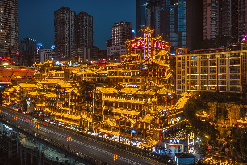 Stroll through Hongyadong Ancient Town : Adjacent to Jiefangbei, Hongyadong offers a glimpse into Chongqing's traditional architecture and culture. Its wooden buildings and lantern-lit alleys create a picturesque backdrop, especially at night when the area is illuminated. Don't miss the chance to take a photo from the bridge overlooking the town for a stunning view.